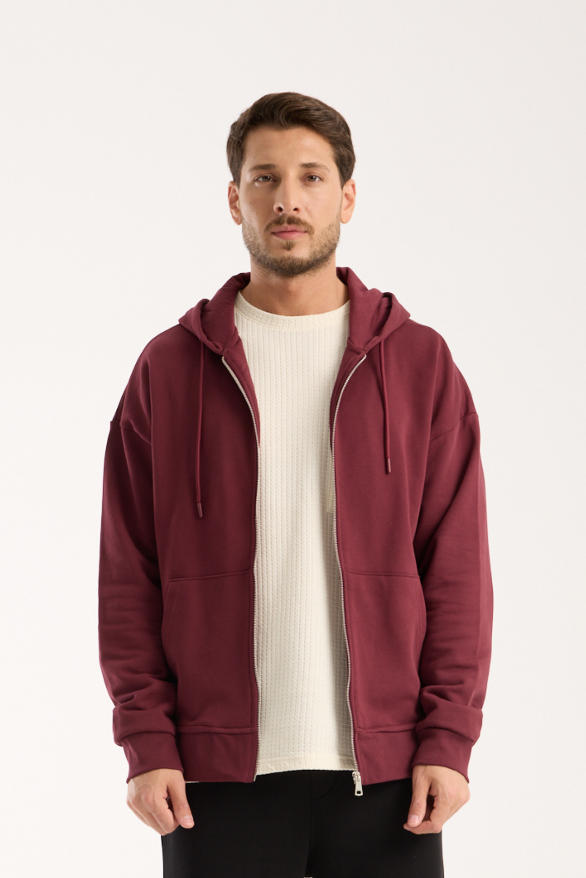 Erkek %100 Pamuk Kapüşonlu Fermuarlı Sweatshirt (51106-04)
