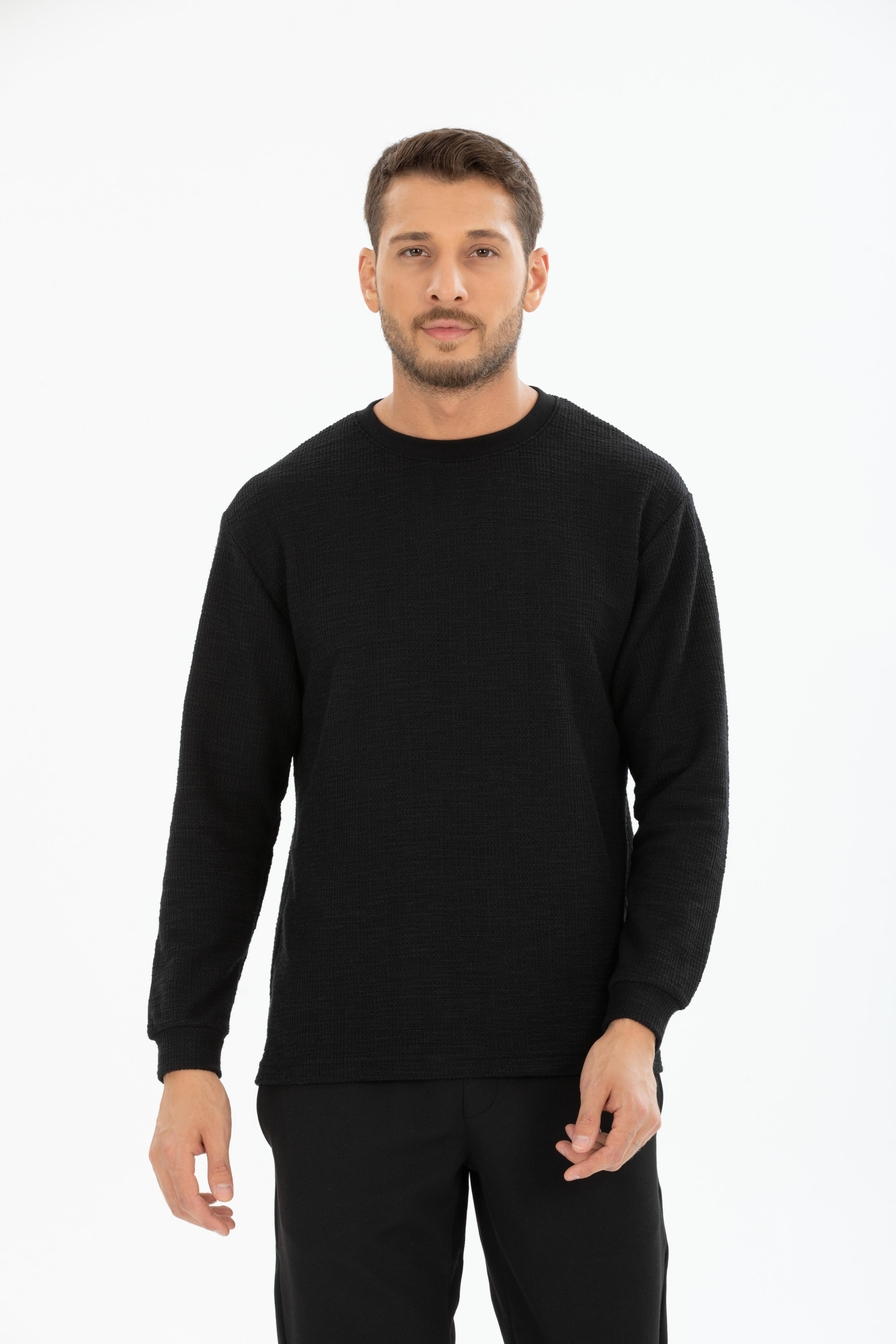 Erkek %100 Pamuk Jakar Örme Mevsimlik Bisiklet Yaka Sweatshirt (50009-01)